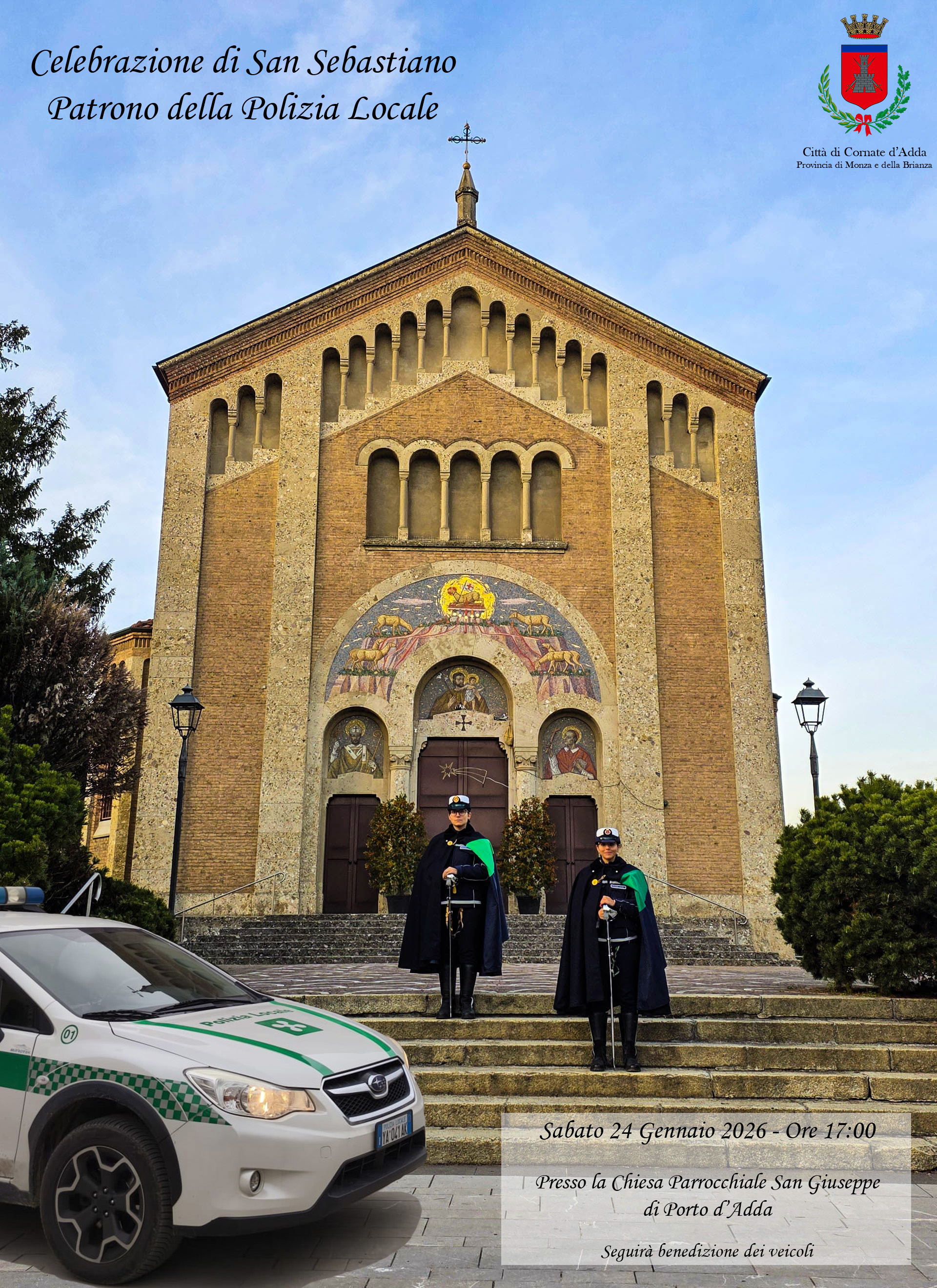 Torna il tradizionale appuntamento con le celebrazioni di San Sebastiano, Santo patrono della Polizia locale. La cerimonia si svolgerà nella chiesa parrocchiale di Porto d'Adda sabato 24 gennaio a partire dalle 17.