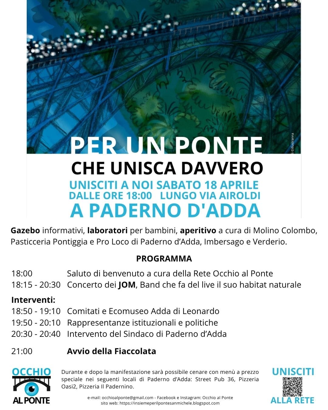 Lo scopo dell’iniziativa è mantenere alta l’attenzione sul tema del nuovo ponte sull’Adda, riguardo al quale le principali osservazioni presentate dai Comuni interessati sono state respinte all’intero del dibattito pubblico concluso pochi mesi fa.